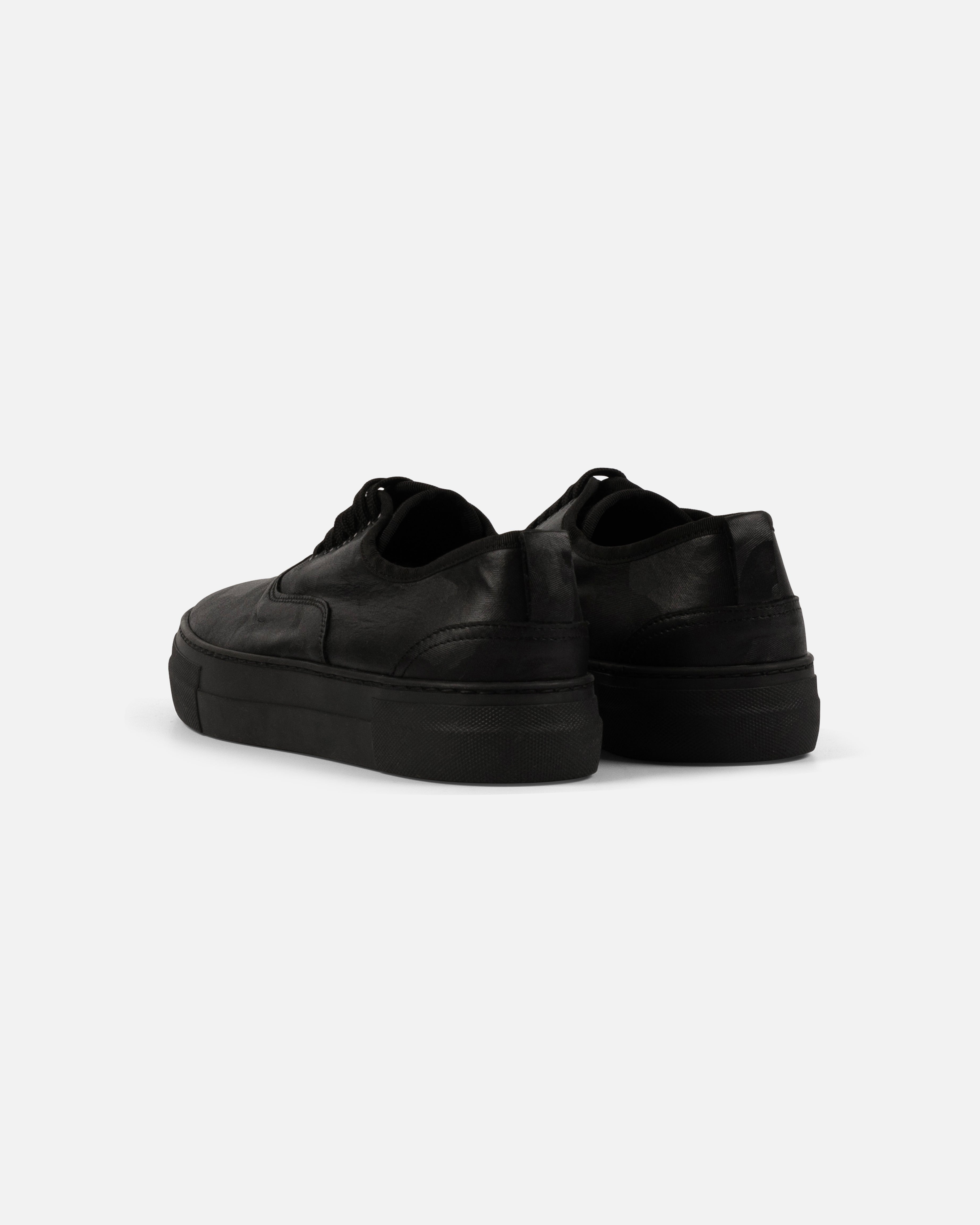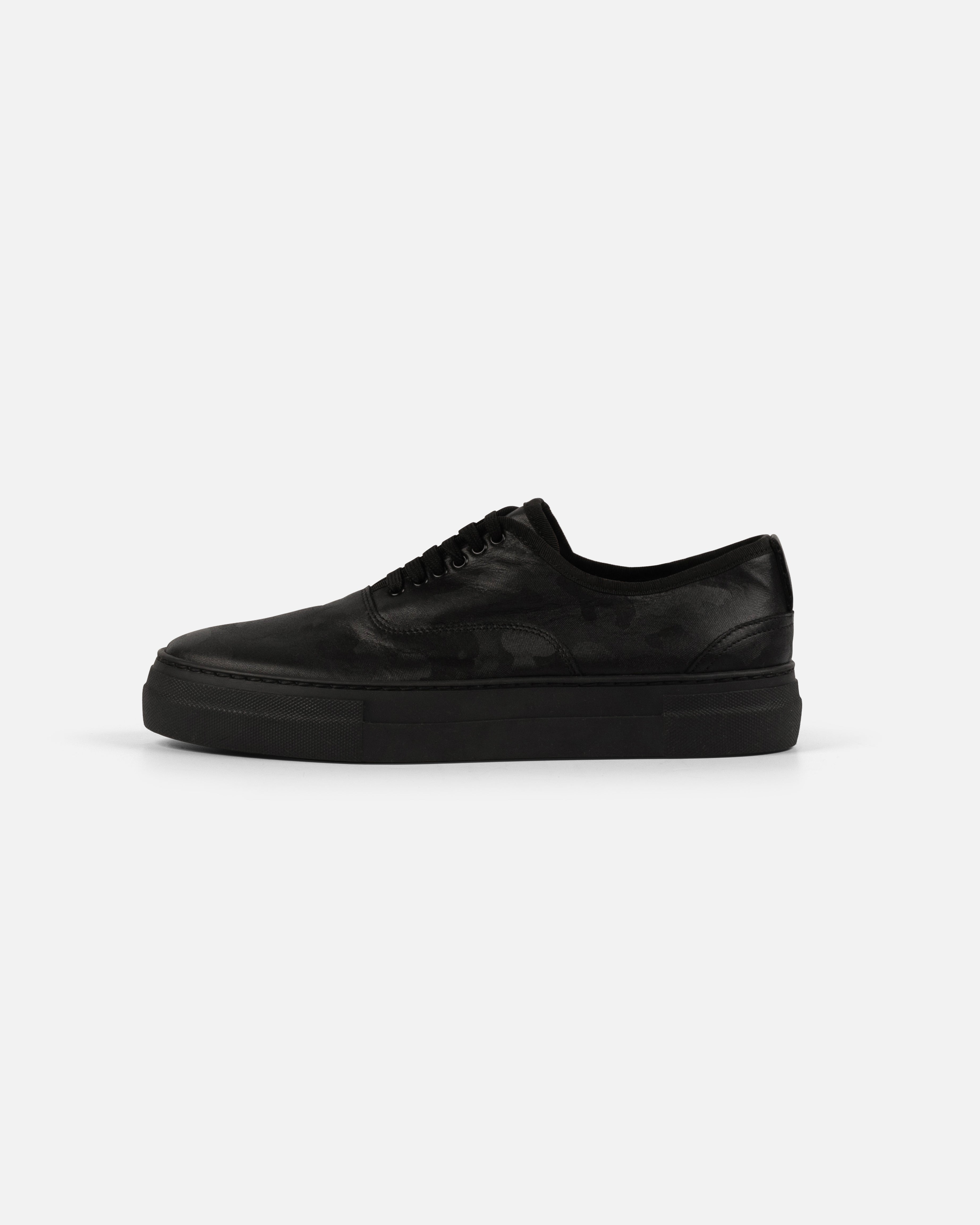 Sneakers in pelle di vitello stampa militare, suola nera, altezza suola 4 cm.