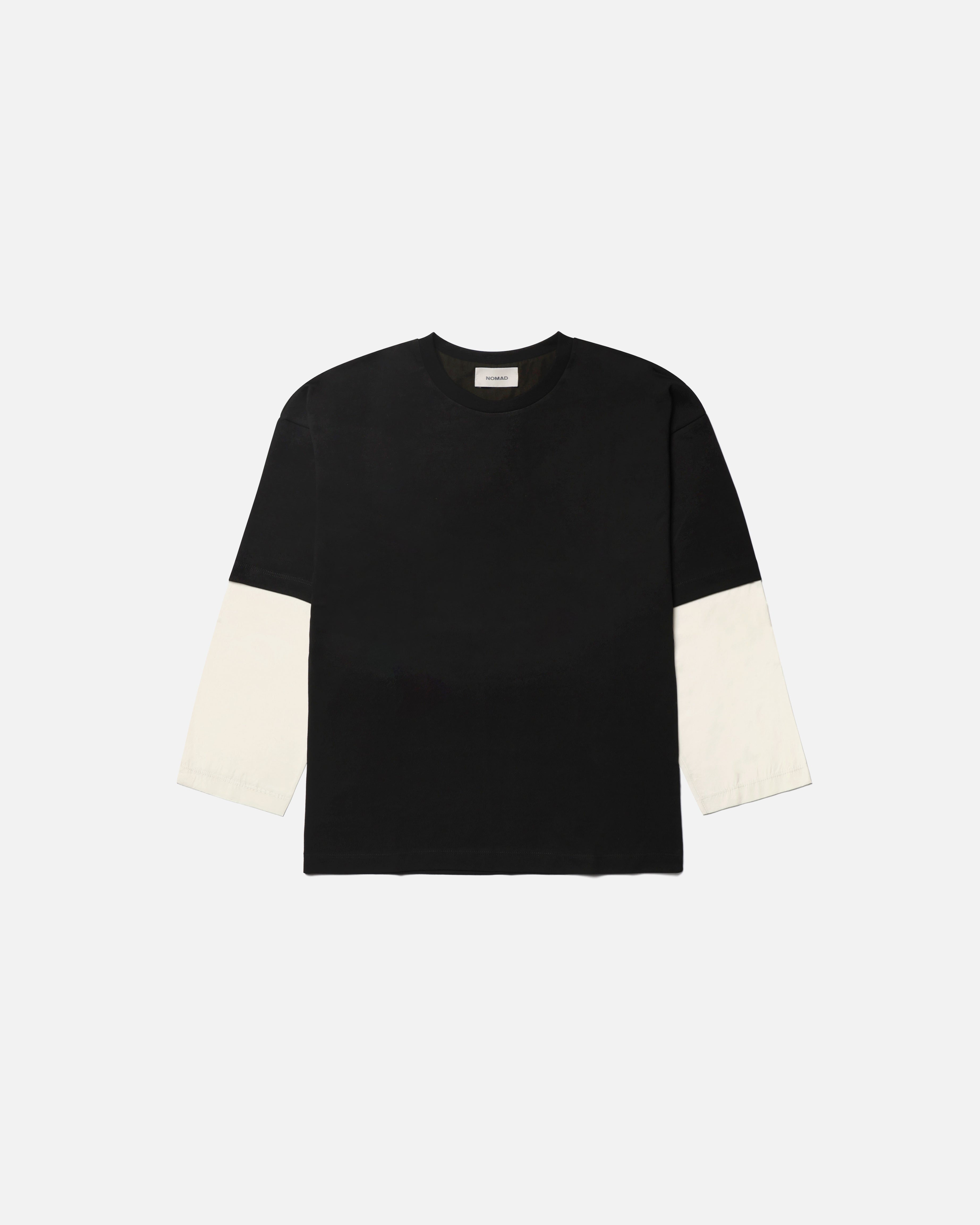 Questo stile Oversize è un capo essenziale nel guardaroba NOMAD. Rivisitata questa stagione in un Jersey pesante con un tocco morbido e caldo, questa T-Shirt squadrata a giromanica arrotondati per il massimo confort con un combo a manica lunga in popeline bianco.