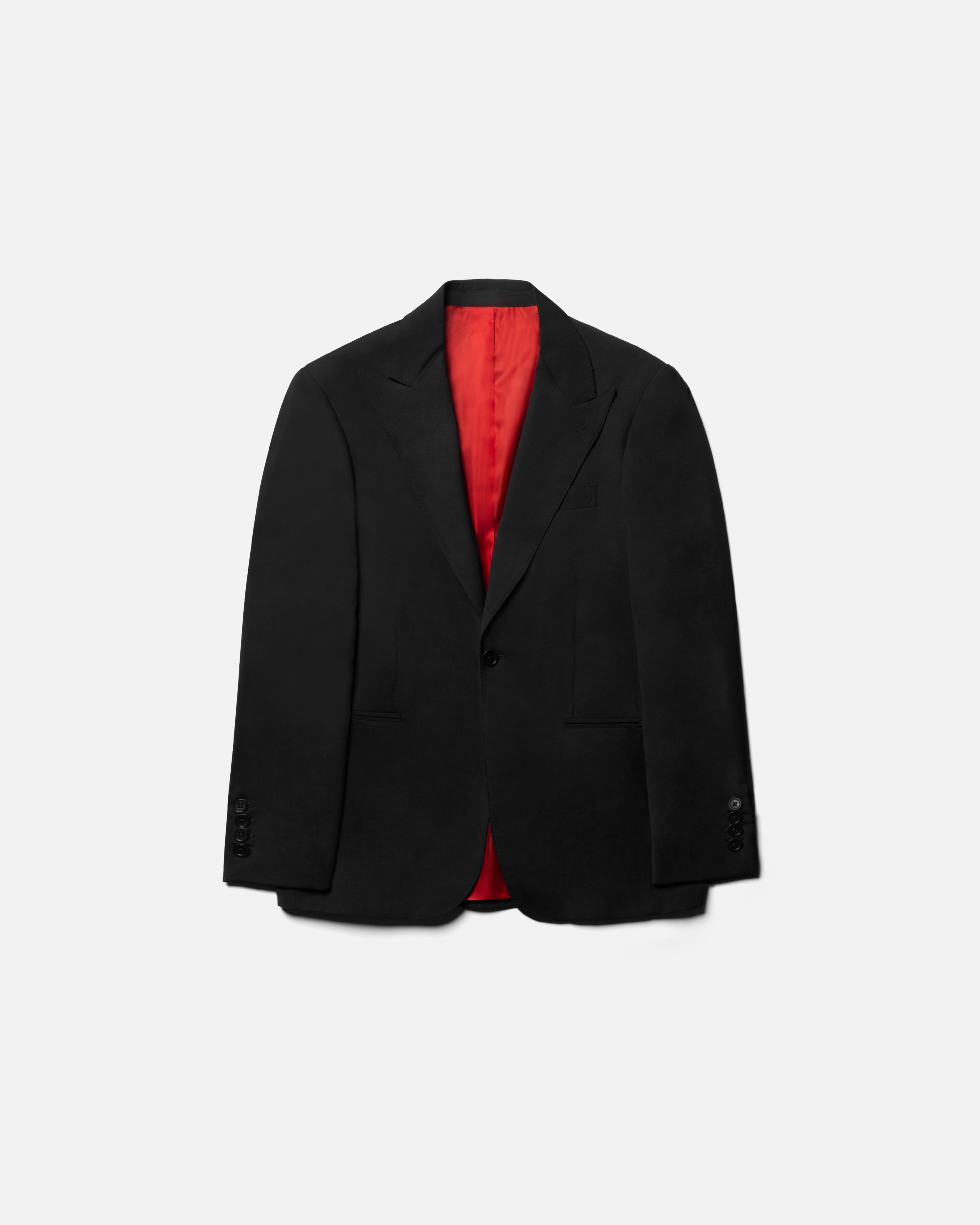 Giacca Monopetto 1 bottone, tessuto fresco lana, colore Nero, fodera 100% viscosa colore rosso