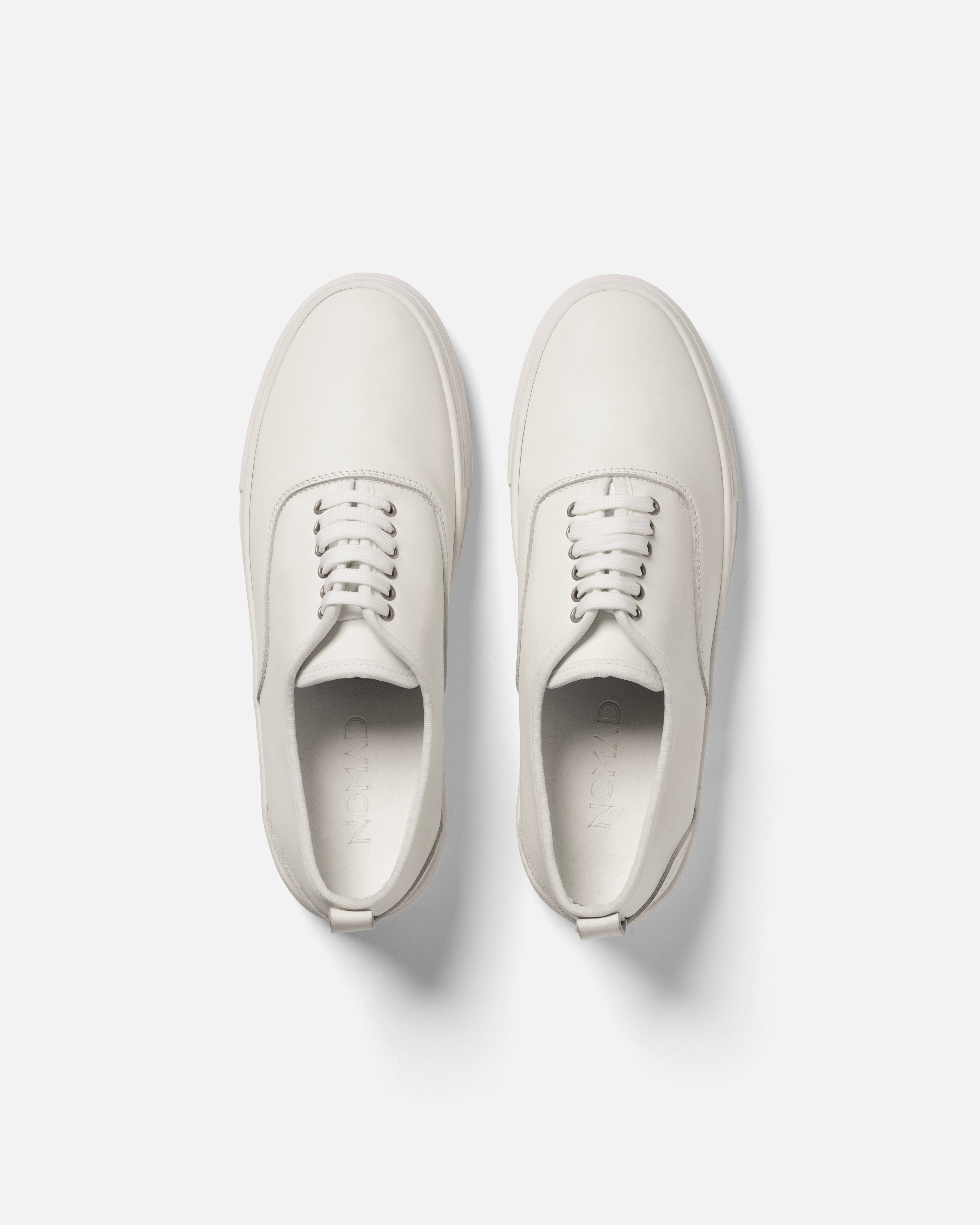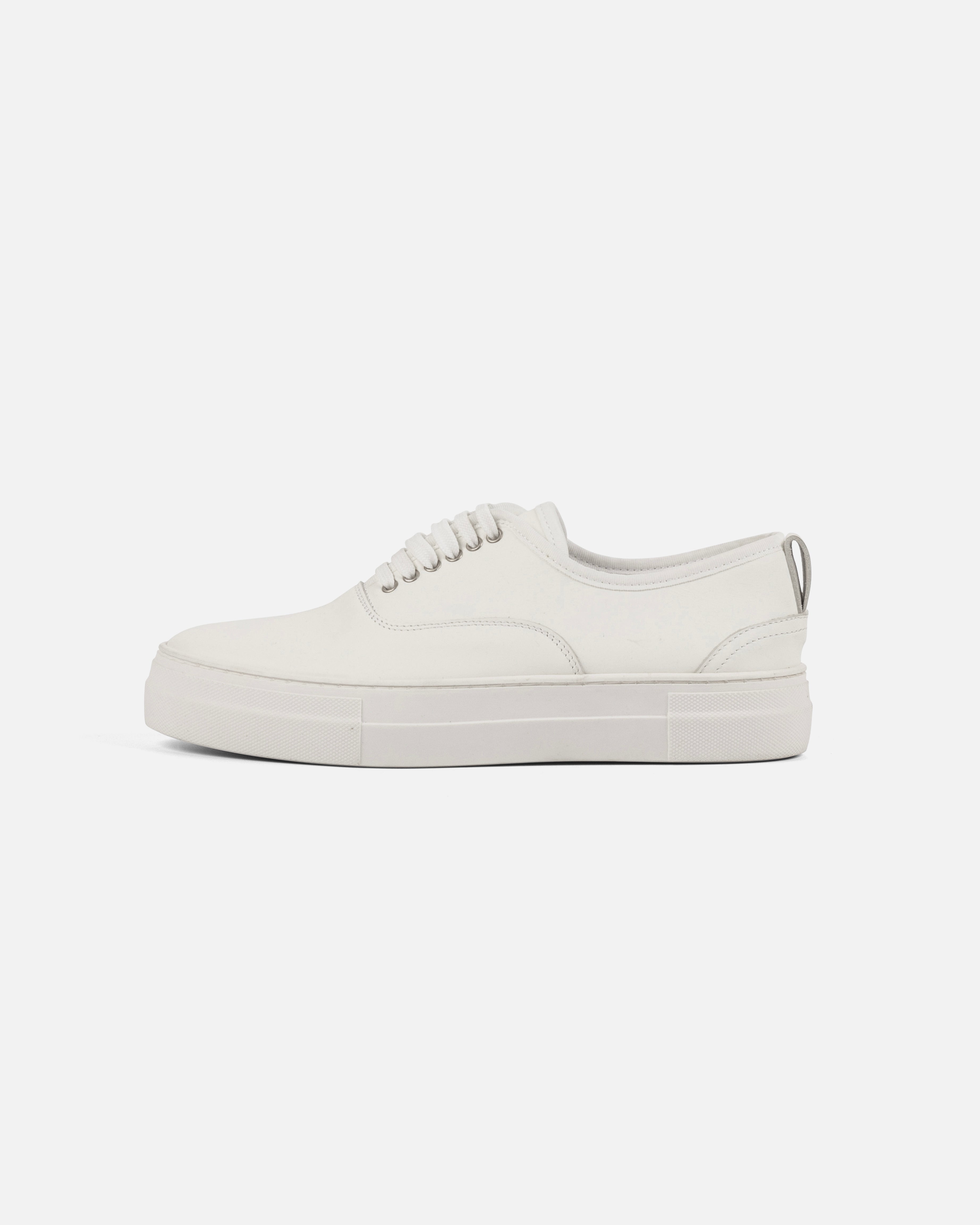 Sneakers in pelle di vitello, colore bianco, altezza suola 4 cm.