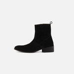 Detroit è uno Stivaletto sottile incastonato su un ripido tacco di 4cm, realizzato in camoscio con cerniera nascosta che gli fornisce una vestibilità elegante