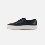 Sneakers in pelle di vitello, colore blu, altezza suola 4 cm.